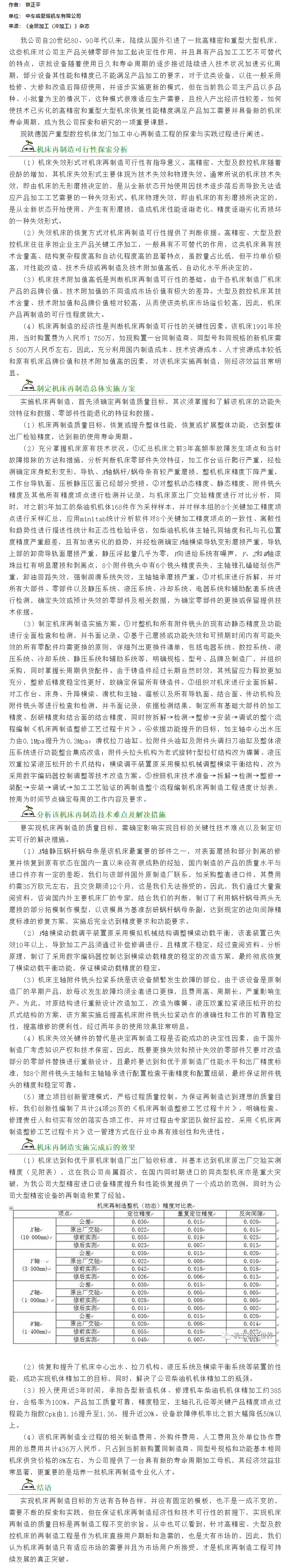 高端机床再制造的探索与实践