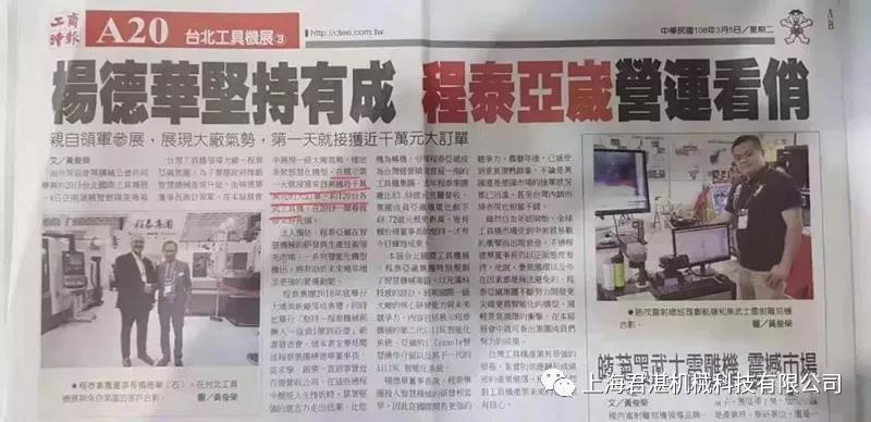 本届展会,杨德华董事长亲自带队,展现出一级大厂的气势,推出多款智能化机型,展示第一天就接获来自美国近千万美金的大订单,约120台各式工具机,迎来2019开门红。