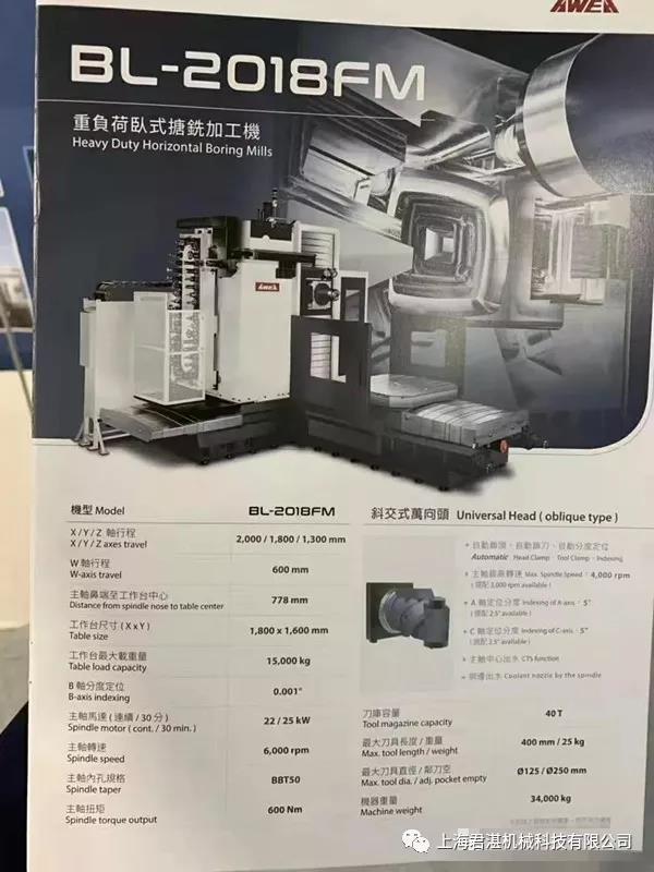 BL-2018FM 重負荷臥式搪銑加工機 + 自動交換頭庫 + 斜交式萬向頭